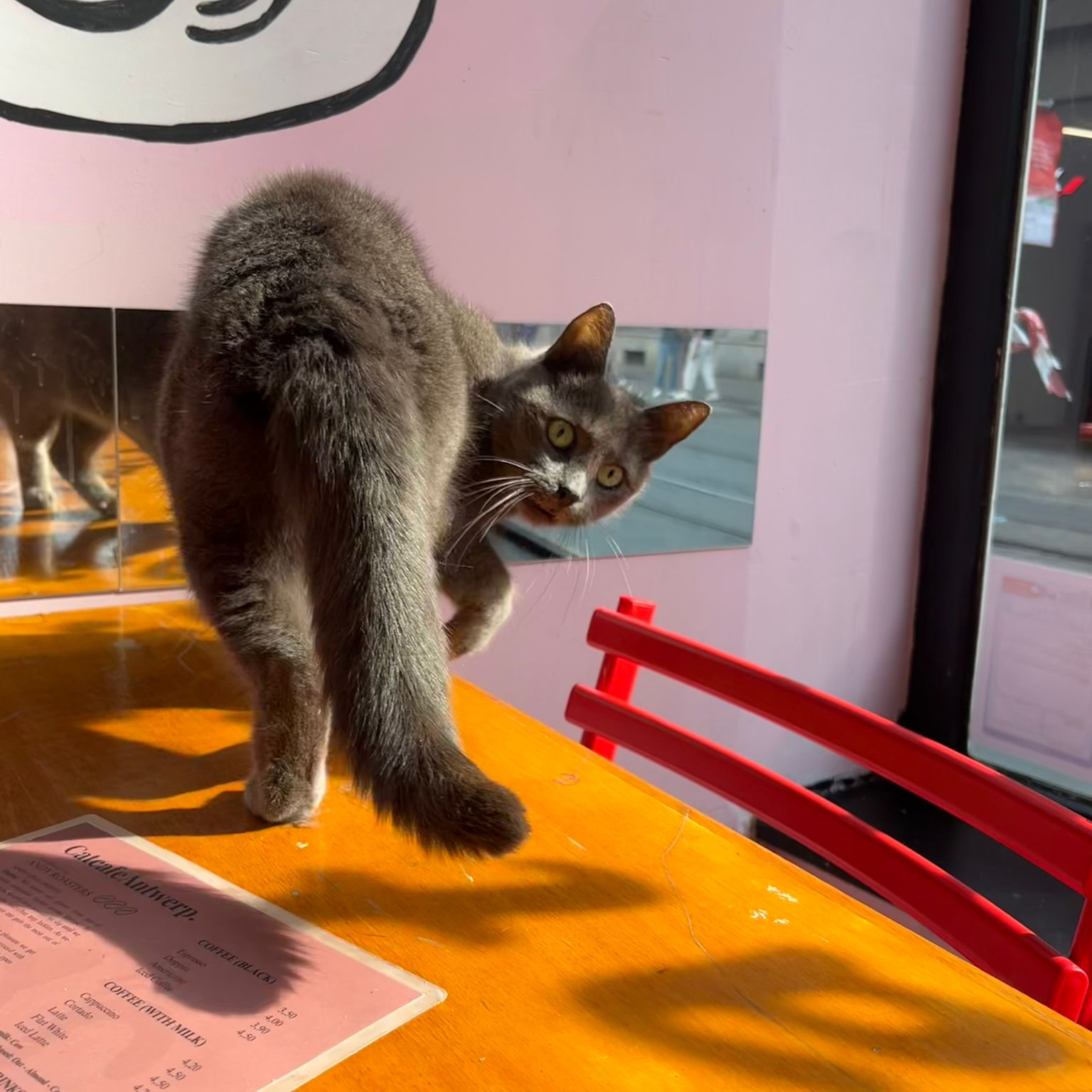Cat Café Antwerp is a sanctuary for those seeking a moment of calm, great coffee and a little feline magic. Our space is home to rescue cats, all eager to make your day brighter. Whether you're here to unwind or simply love being surrounded by furry friends, you'll feel right at home here.